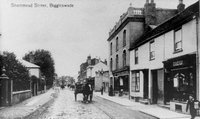 4 The shop at No 4 was a grocers in 1841, occupied by Richard Dalton. His widow Jane Dalton, continued as a grocer in the 1851 census. Also resident was her eldest daughter Mary, husband Isaac Moseley a shoemaker together with their children; John, James, Richard and Emma. The Moseley family were still there with her in 1861. Conditions changed in 1871 when she became a confectioner assisted by her daughter Rebecca. Thereafter, Rebecca Dalton ran the confectionery business assisted by Elizabeth Cousins, right through to 1916 when she died. Then the property belonging to Miss Rebecca Dalton was sold by auction at the Swan Hotel on 26th February 1919 by George Wagg. It consisted of a Shop, Sitting room, Kitchen and Scullery, Working Bakehouse and Large Cellar, plus 3 Bedrooms and a Box-room on the First floor. Mrs Charles Warren the butchers’ wife next door at No 6 purchased the premises for £360. The furniture and effects had been sold on site, two days earlier. The shop was then rented to John Burnage who with his wife ran The Dainty Confectionary Shop with Mrs Burnage’s Devonshire Cream Ices. They opened a spacious new tearoom in 1922, this continuing into the mid 1930’s. There was a complete change of use by 1940 when Repetition Tyre & Accessories Ltd tyre dealers took the tenancy. Mrs Warren had bought No 4 in 1919. As mentioned above D J Clarke’s radio and television store added No 4 to No 2 in 1951 and it was rebuilt separately and occupied by H T Boutall bookmaker by 1974. 'Biggles Tandoori Restaurant' opened about 1990 and have considerably altered the building in recent years, enlarging their original premises by taking in No 6.